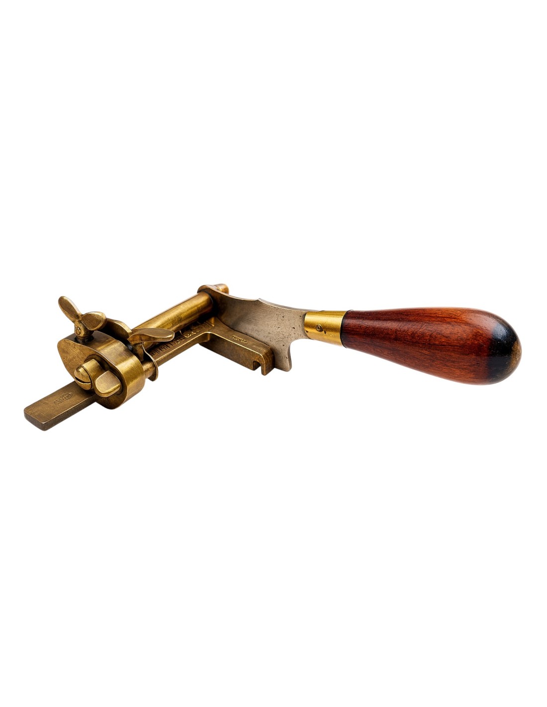 Esta herramienta tradicional para el corte de cuero destaca por su precisión y durabilidad, convirtiéndose en un elemento esencial en cualquier taller. Permite realizar cortes en tiras de entre 0 y 10 cm con gran exactitud. Fabricada en latón dorado cuidadosamente pulido, combina resistencia y estética.