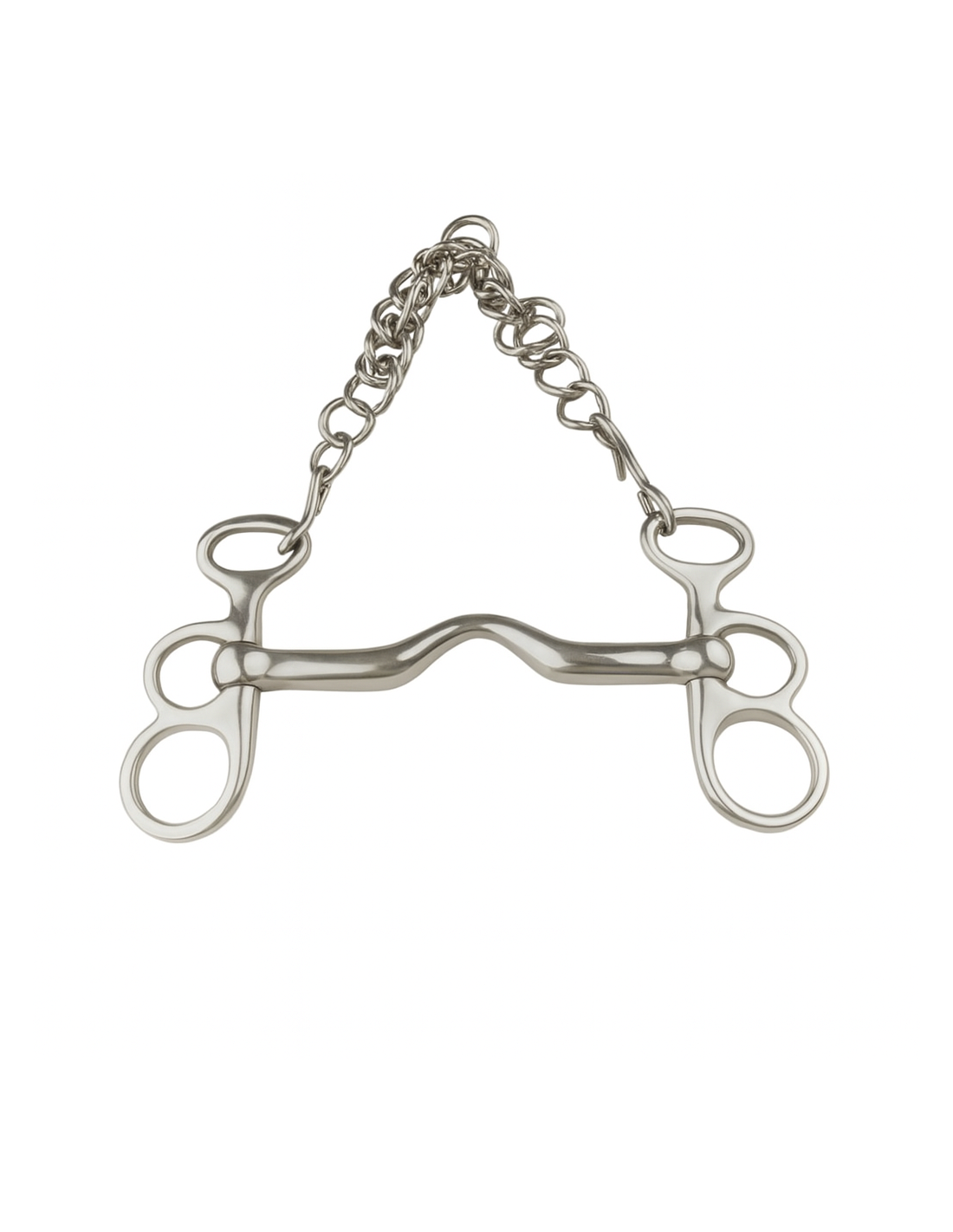 Bocado modelo Barcelona, para enganche fabricado en acero inox con embocadura suave, de 12.5 cm y 13.5cm de embocadura.