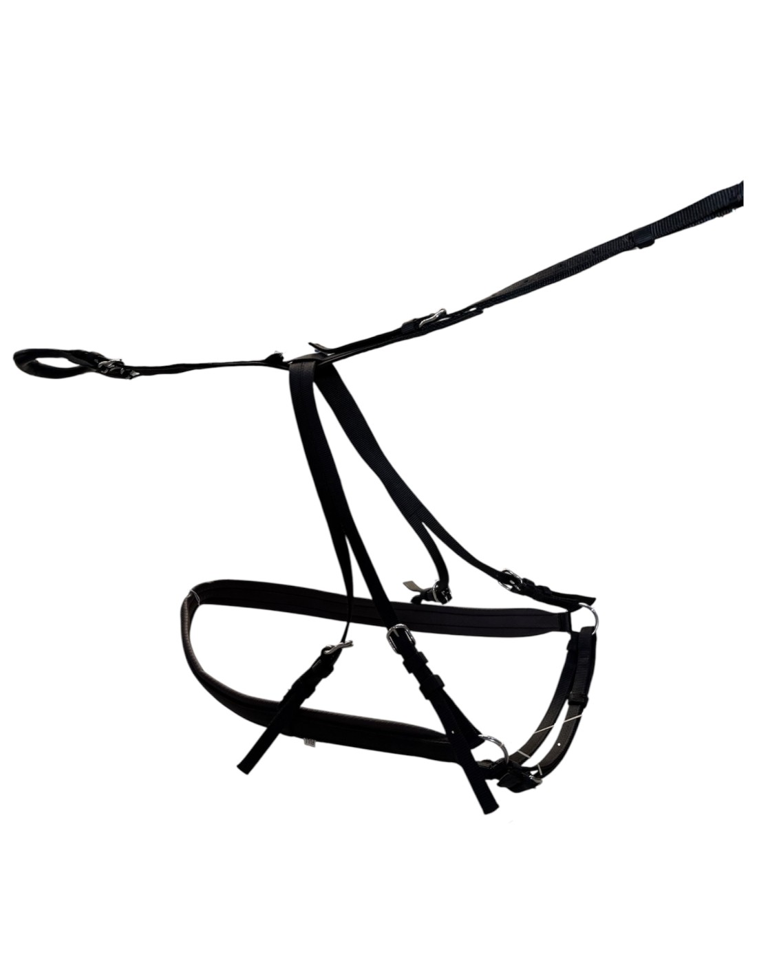 La retranca es la parte encargada de frenar el coche de caballos. Esta parte de enganche debe ser fuerte y acolchada para evitar rozaduras, está fabricada en nylon y PVC combinado, con todo el hebillaje de góndola. Incluye la caída de la retranca y la baticola.