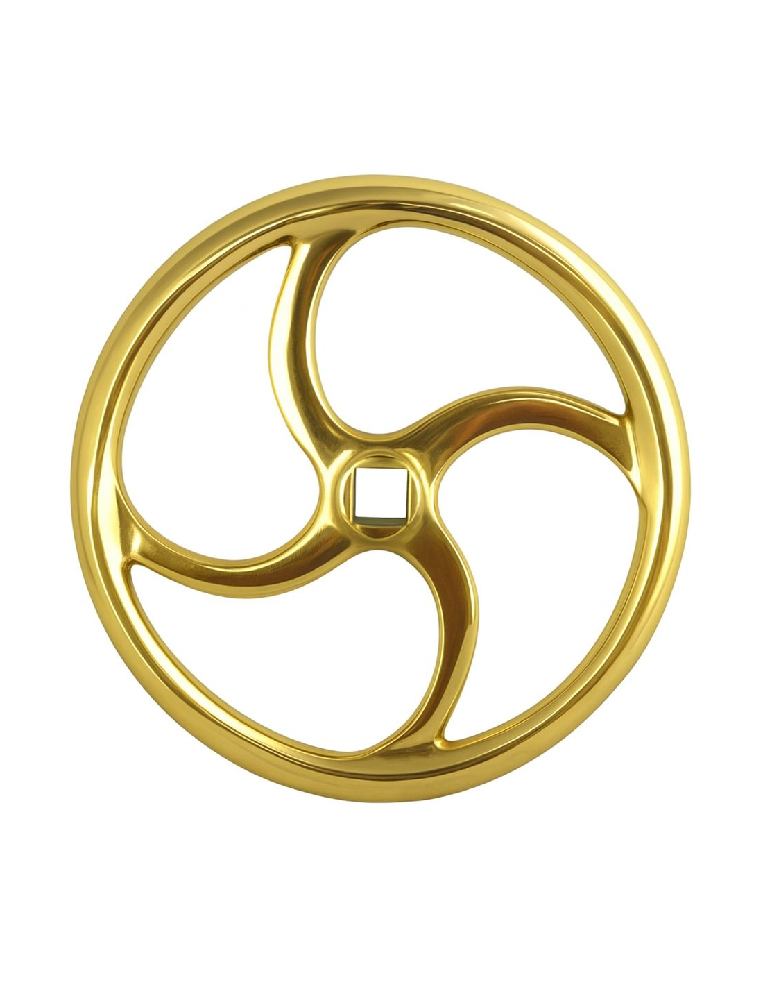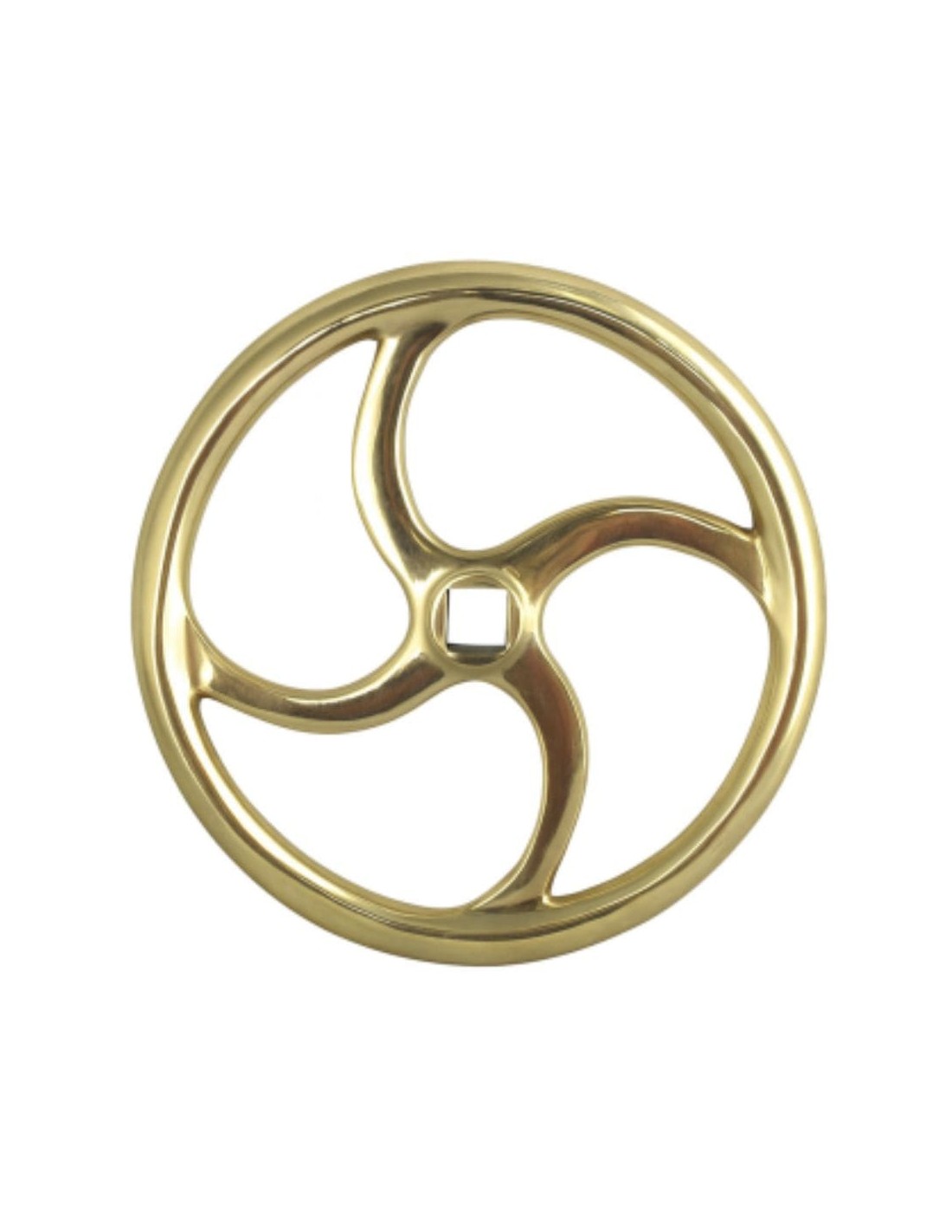 Rueda de Latón fundido que acciona el freno de mano del coche de caballos.