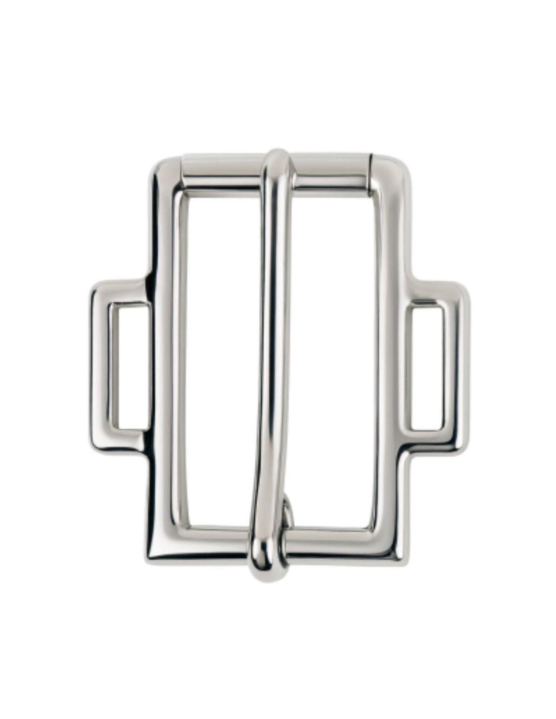 Se caracteriza por su forma cuadrada con un rulillo incorporado en la parte superior. Estas hebillas están fabricadas en metales de gran calidad que les aporta toda la fuerza necesaria llegando a ser una hebilla muy resistente. Está diseñada para guarniciones de tronco (dobles), este modelo tiene dos asas laterales, donde se colocan en cada una un francalete con una hebilla que abrochan a las caídas de la sobreaguja.