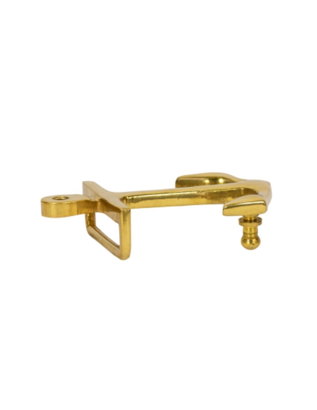 Hebilla de cinturón realizada en latón fundido, con un paso para cinturones de 35 mm. Esta hebilla realizada con forma de ancla tiene en el extremo un pincho que pasa en forma de pasador para regular los puntos del cinturón.