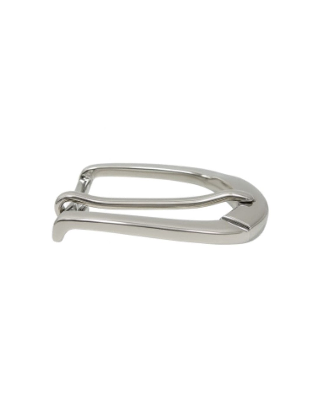 Hebilla de latón niquelado, con una forma de medio punto. Se trata de una hebilla con un paso de 35 mm especialmente diseñada para cinturón.