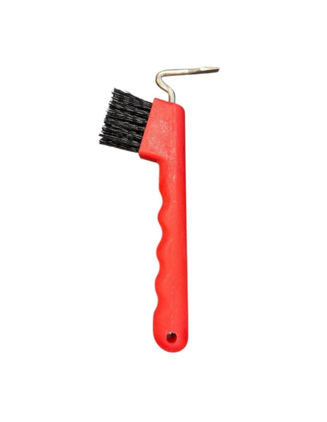 Está fabricado en PVC con forma en la empuñadura para un buen agarre, tiene un cepillo y un gancho para la extracción y limpieza de los restos incrustados en el casco.