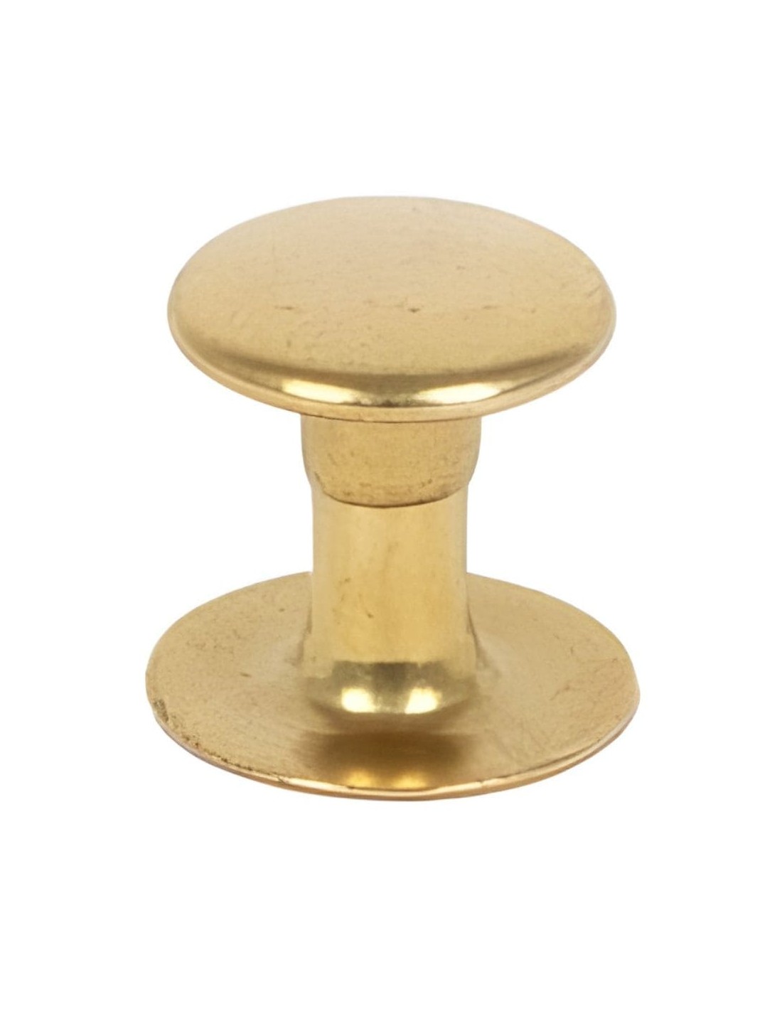 Remache de dos partes, se utiliza por golpe y es de un solo uso, digamos que no es de quita y pon. Esta fabricado en latón y tiene una capacidad máxima de unión de 5 mm.