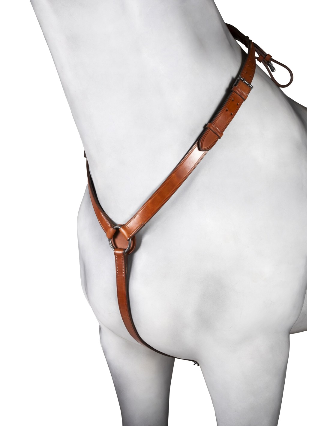 El pechopetral es un arnés que se coloca en el pecho de un caballo para evitar que la silla se deslice hacia atrás. En el caso de un pechopetral vaquero artesano, se presta especial atención a los detalles estéticos y funcionales para asegurar que sea resistente, cómodo y tenga un diseño atractivo. Estos pechopetrales, han sido montados con una hebilla de fragua de acero inoxidable.
